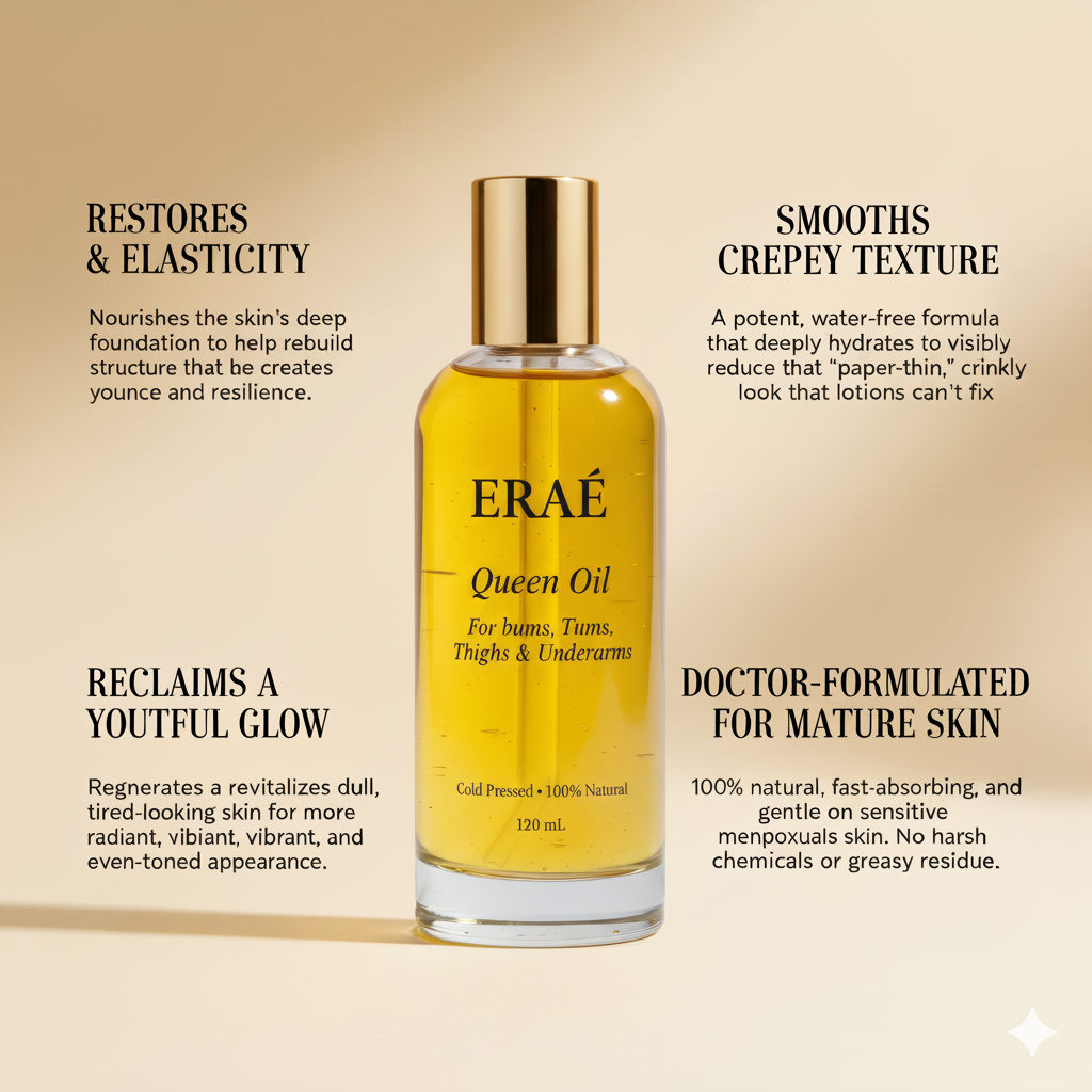 Queen Oil is formulated to be rich and nourishing, yet it absorbs beautifully into the skin within minutes. It leaves behind a velvety softness and a healthy, radiant glow—never a sticky or oily film.