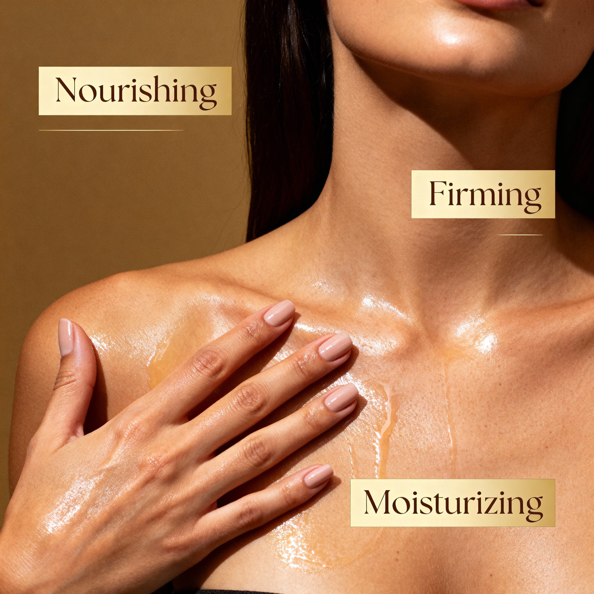 This is the most important question, and the answer is the reason we created Queen Oil. Unlike most firming products, which are primarily water-based lotions, Queen Oil is a potent, water-free blend of pure botanical oils.