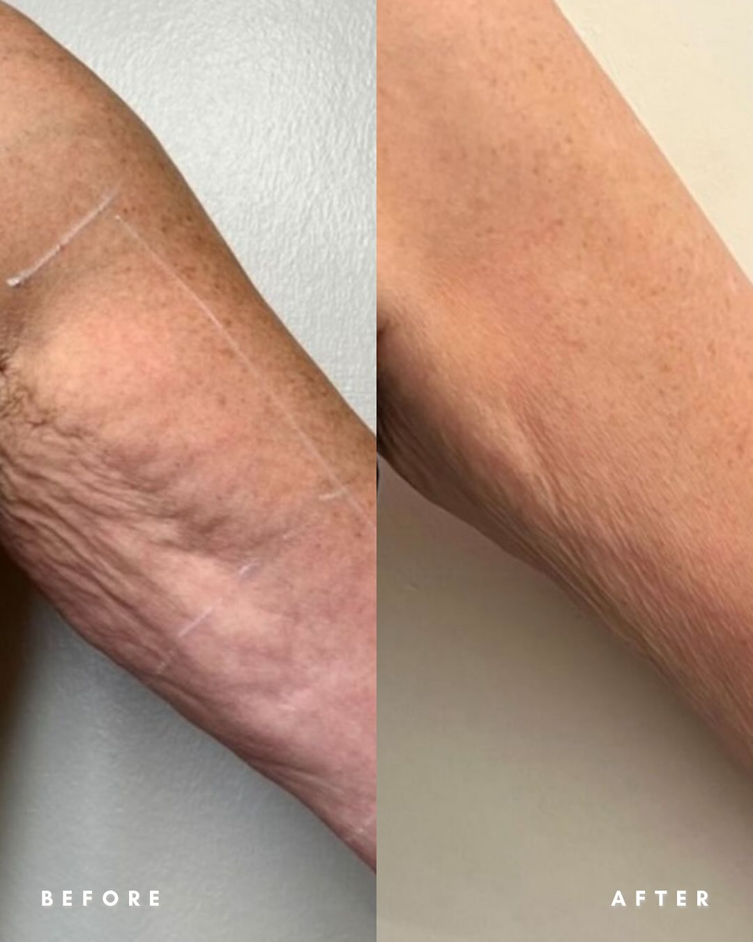 Visible improvements in texture, smoothness, and the appearance of "crepey" skin are often noticed within a few weeks of consistent daily use.